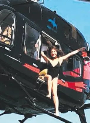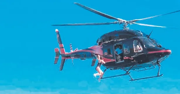 34 yaşındaki güzel yapımcı, helikopterden atlamadan önce poz vermeyi ihmal etmedi.