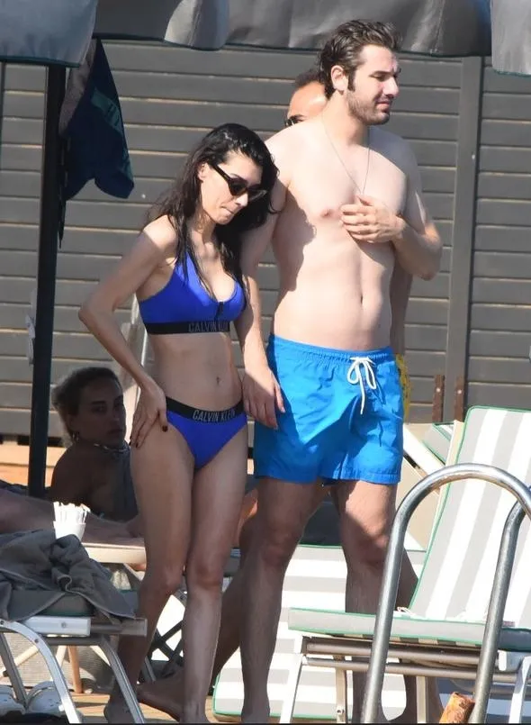 Oyuncu çift, plajda değil podyumda gibiydi.