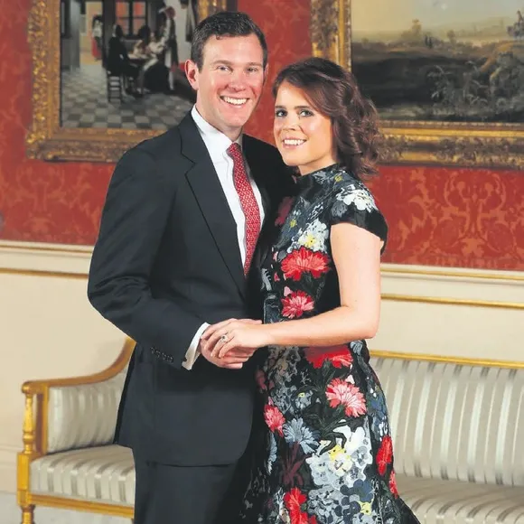 Bu fotoğrafla Jack Brooksbank ile nişanını ilan eden Prenses Eugenie'nin üzerindeki çiçekli elbise de Erdem imzalıydı.