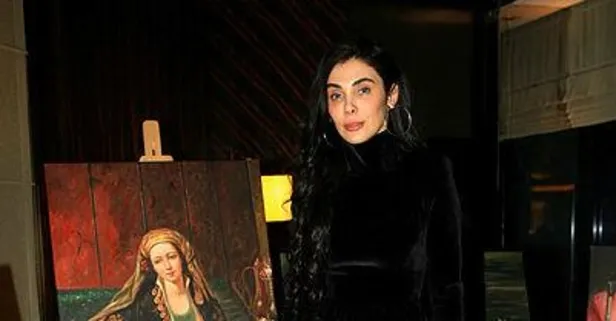 Serenay Aktaş, yaptığı tablonun önünde poz verdi.