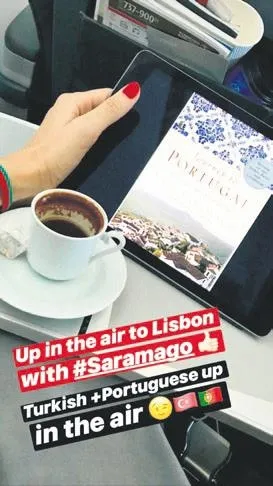 Tülin Şahin, önceki gün aşkının memleketi Portekiz’e giderken bir yandan da uçakta Türk kahvesi keyfi yaptı.