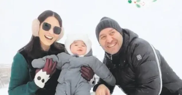 Nedim Keçeli ile eşi Gamze Keçeli ve oğulları Yaman'ın kar neşesi