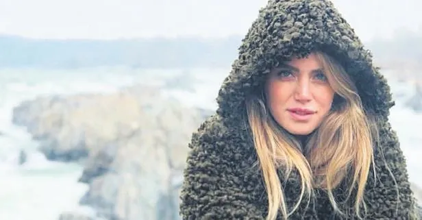 Güzel oyuncu, buz gibi soğuğa peluş montu ve eldivenleriyle önlem alsa da şelale manzarasında eşine böyle poz verirken de tir tir titredi.