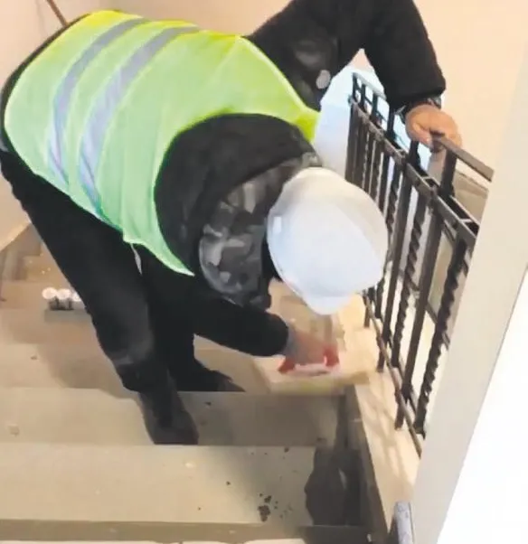 İnşaat projesinin her detayıyla yakından ilgilenen Altuğ Leblebici, güvenlik önlemlerini aldıktan sonra işçilerle birlikte böyle sıva yaptı.