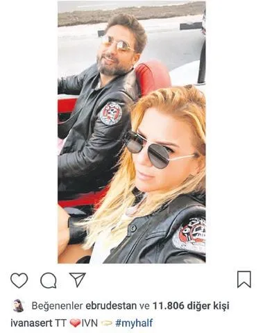 İkoncan İvana Sert ile ünlü motosiklet tasarımcısı Tarhan Telli'nin aşktaki uyumu stillerine de yansıdı. Önceki gün Dubai'deki sevgilisiyle bir örnek deri ceket giyen Sert, üstü açık otomobilde böyle poz vererek hava attı.