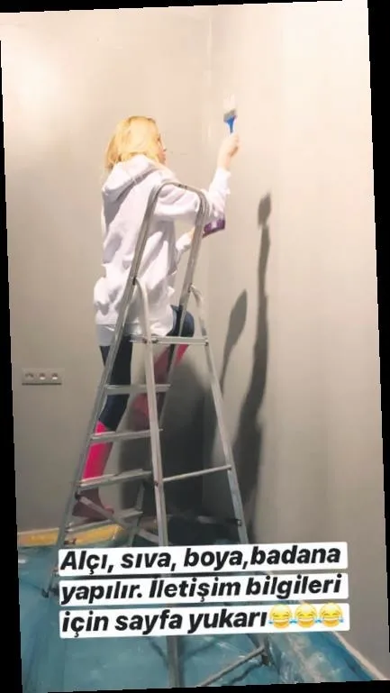 İdo Tatlıses'le ilişkisi adım adım evliliğe giden Yasemin Şefkatli'den esprili paylaşım... Güzel model, dün duvarları boyarken çekilen bu fotoğrafına şu notu düştü: "Boya ve badana ihtiyacınız varsa beni arayın."