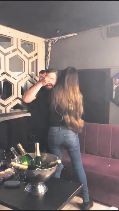 Yağmur Aşık'ın sarmaş dolaş dans ettiği Mustafa adlı genç adam, görüntülendiklerini fark edince eliyle yüzünü gizledi.