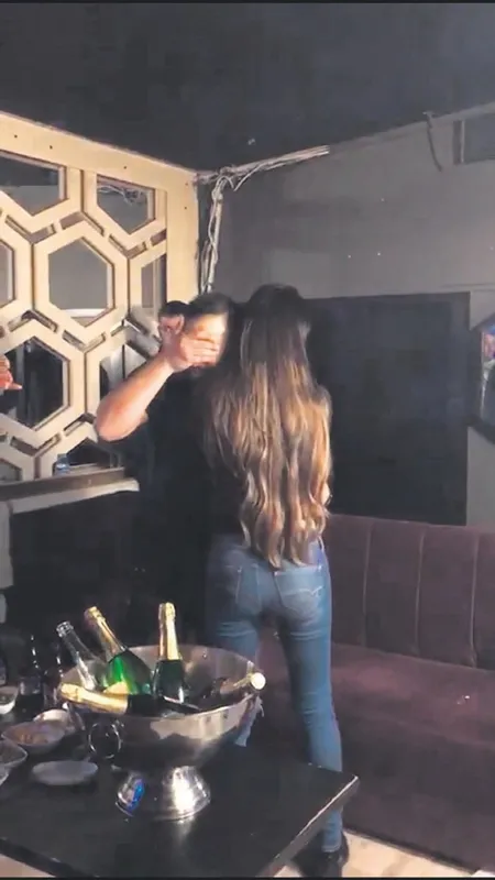Yağmur Aşık'ın yanındaki erkek, bir yandan elini genç kadının beline dolarken bir yandan da yüzünü gizlemişti.