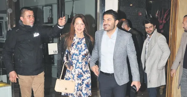 Ebru Şallı ile işadamı nişanlısı Uğur Akkuş şık giyim tarzlarıyla dikkat çektiler