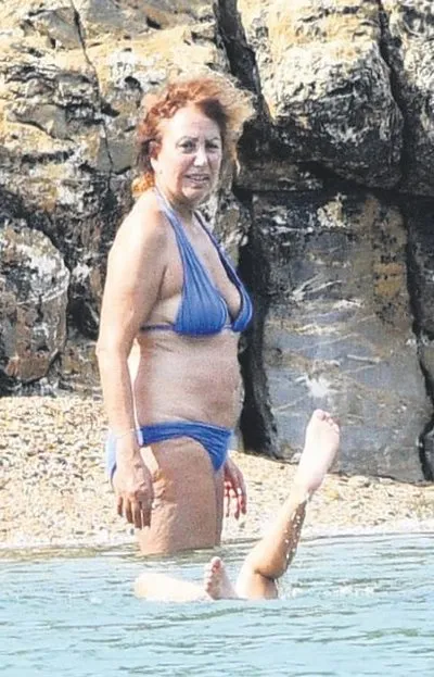 74 yaşındaki Tecimer, kendinden 25 yaş küçük eşi Mete Deniz'le Yalıçiftlik'teki lüks bir otelin plajında denize girdi. Tecimer, yaşıtlarının aksine mayo yerine bikini giyerek yıllar önceki gibi iddiasını konuşturdu. Ancak Parkinson'dan dolayı ilaç kullanan Tecimer'in aldığı kilolar gözden kaçmadı.