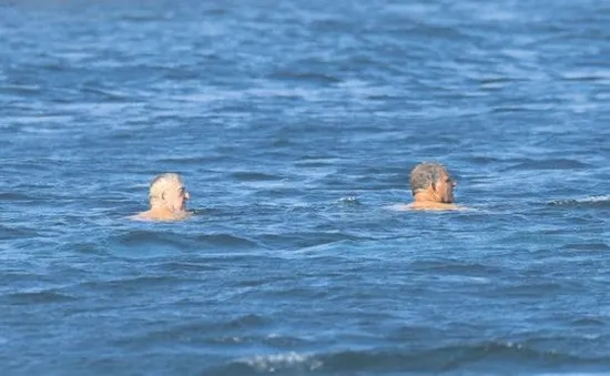 Koç, kuralını bozmadı ve akşam saatlerinde korumaları eşliğinde tam bir saat boyunca yüzdü.