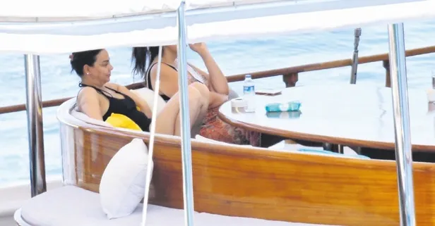 Kızı Alara ve dostlarıyla günlük kirası 5 bin Euro olan gulet teknede koyları gezen şarkıcı, arkadaşlarının gazetecileri fark etmesiyle bir anda saklandı.