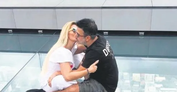 Emrah ile eşinin, zemini cam olan gökdelenden verdiği pozlar, "Romantizmin zirvesindeler" dedirtti.