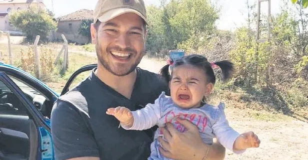 Çağatay Ulusoy, dizi setinde bir bebeği sevip babalık provası yaptı