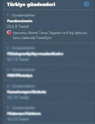 'Hercai' tutkunları, '#senbenimsin' etiketiyle attıkları tweetlerle diziyi Twitter Türkiye'nin en çok konuşulanlar listesinin ilk sırasına taşıdı. Dizi, Dünya Trending Topics listesinde ise 4. sıraya kadar yükseldi.