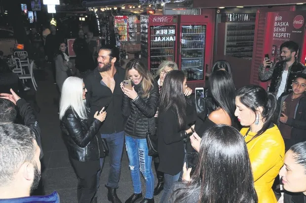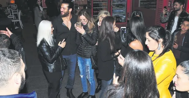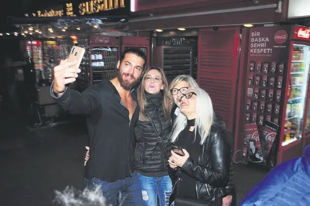 Yakışıklı oyuncuyla fotoğraf çektirme yarışına giden kadınlar, Can Yaman'ı uzun süre esir aldı. Her hayranıyla tek tek selfie yapan ünlü oyuncu, mekana geri girmek istese de başarılı olamadı.