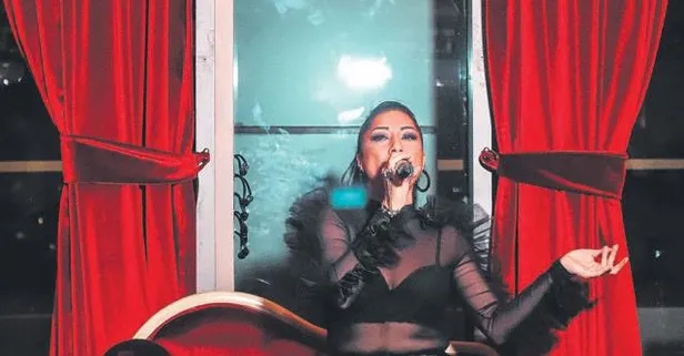 Jeyan Büyükburç, sahne performansıyla dinleyicilere keyifli anlar yaşatıyor.