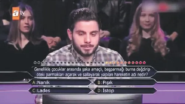 Her bölümüyle ekrana damga vuran 'Kim Milyoner Olmak İster?', önceki akşam da reyting rekoru kırdı. İkinci soruda 'nanik' yanıtı veremeyip elenen yarışmacı, sosyal medyada dalga konusu oldu.
