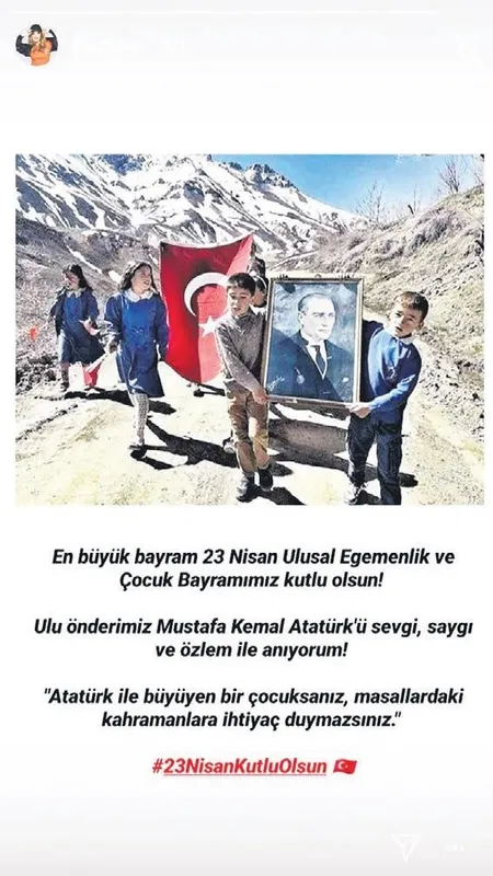 Hadise, elinde Türk bayrağı ve Atatürk fotoğrafını taşıyan çocukların bu karesiyle herkesin bayramını kutladı.