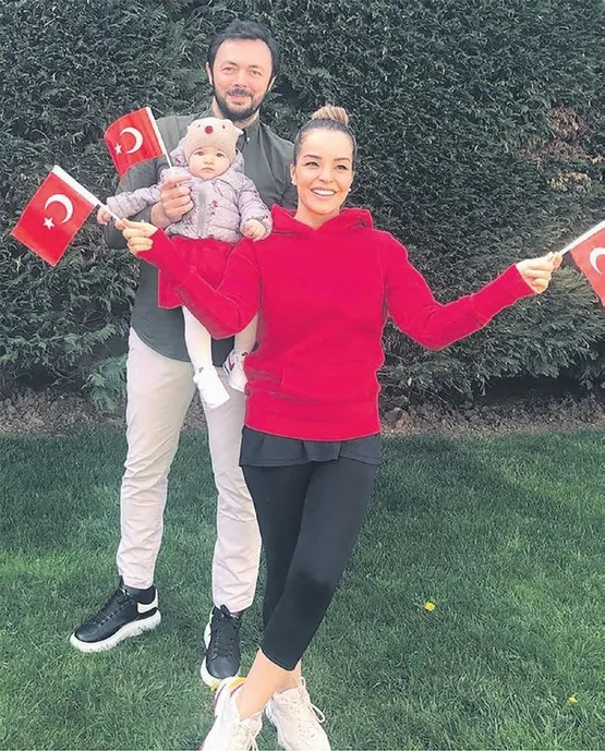 Türk bayraklı tişört giyen Pınar Altuğ, kızı Su ve eşi Yağmur Atacan'la verdiği bu kareyle 23 Nisan coşkuna ayak uydurdu.