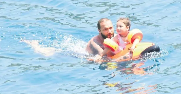 Denize iyice alışan Arya'nın tek başına yüzmeye başlaması Berkay'ı çok sevindirdi.