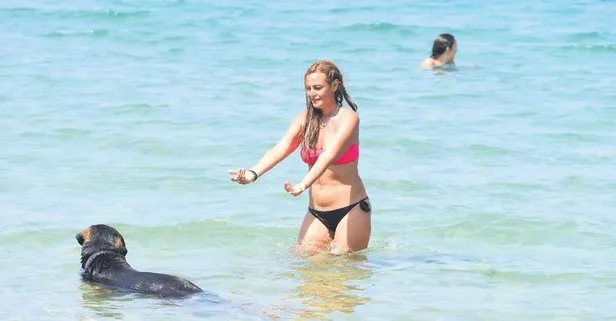 Açelya Elmas sevimli köpeğiyle denizde eğlendi