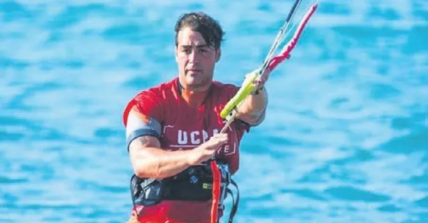 Yaz tatiline Datça'da devem eden Sarp Levendoğlu, dün su sporu yaptı.