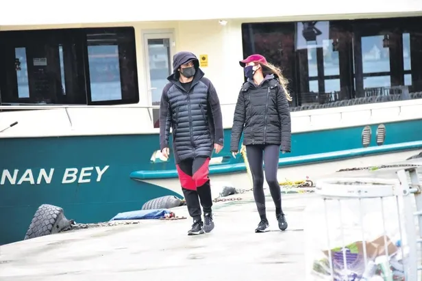 Birkan Sokullu, önceki gün sevgilisi Eda Gürkaynak ile Boğaz'da yürüyüş yaparken görüntülendi. Aşkıyla maskesini takıp önlemini alan ünlü oyuncu, sete yetişeceği için soruları yanıtsız bıraktı.