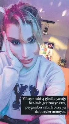 İrem Derici, yılbaşındaki 4 günlük sokağa çıkma yasağını kendisiyle geçirecek bir kişi aradığını duyurdu. Derici'ye çoğu teklif, kadınlardan geldi.