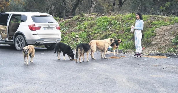 Burcu Kıratlı'dan güzel hareket: Sokak köpeklerini elleriyle besledi
