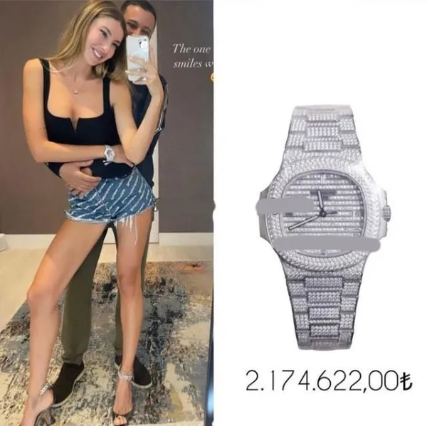 Patek Philippe'nin mücevherlerle süslenmiş modeliyle poz veren Şeyma'nın Mısırlı aşkının hediyesi olan saatinin fiyatı 2 milyon 174 bin.