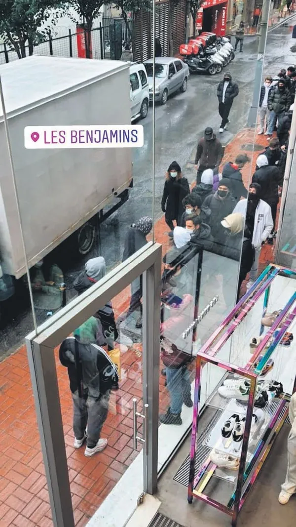 Gençler, Nike markasının yine çıkardığı 'Dunk' modelini ilk giyen olmak için Les Benjamins mağazasının saat 10.00'da açılmasını bekledi.