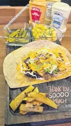 Şarkıcı, önceki akşam nişanlısı Mustafa Tohma'nın hazırladığı etli dürüm ve patates kızartmasını yedi.