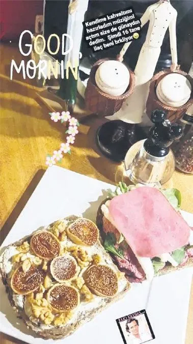 Ünlü sunucu, dün sabah da kendisi için jambonlu ve incirli olmak üzere iki dev sandviç yedi.