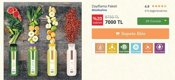 Adrese teslim yemek gönderen şirketlerin istediği ücret ise "Güzelliğin ağır bedeli" yorumları yaptırdı. İçerisinde tavuk ya da kırmızı etin olmadığı 28 günlük yiyecek ve detoks içeceklerinden oluşan zayıflama paketlerinin fiyatları 7 bin TL'den başlıyor.