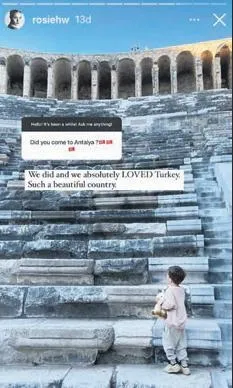 12.3 milyon kişinin takip ettiği Instagram'dan hayranlarının sorularını yanıtlayan ünlü model, "Antalya'ya geldiniz mi? sorusuna; "Geldik ve Türkiye'ye bayıldık. Türkiye, çok güzel bir ülke" yanıtı verdi.