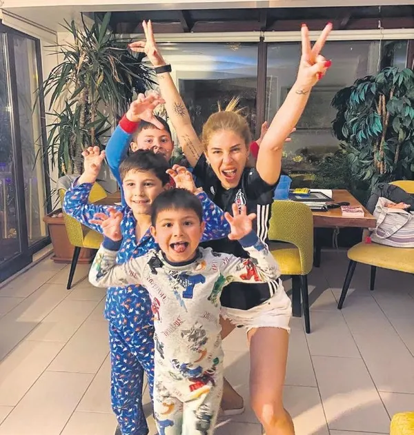 Oyuncu Irmak Ünal, heyecanlı maç sonunda evinde çocuklarıyla şimpuyonluğu kutladı.