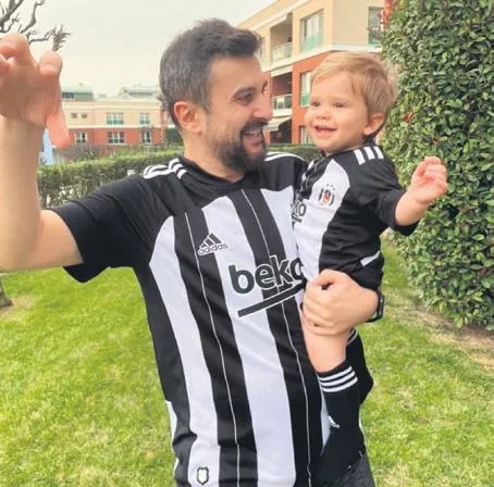 Ünlü şarkıcı Gökhan Tepe, oğlu Denizhan'la birlikte formaları giyip bu pozu verdi.
