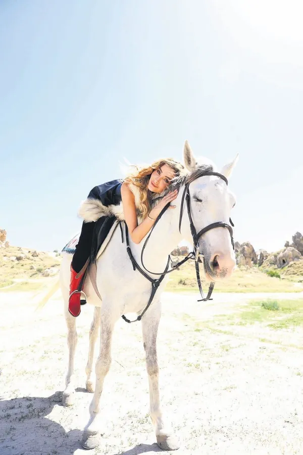 Dosso Dossi Fashion Show'da nefes kesen Özge Ulusoy, 'güzel atlar diyarı' Kapadokya'daki çekimlerden sonra atlarla stres attı. Atlara olan sevgileriyle bilinen Ulusoy, peri bacalarının büyülü atmosferinde de böyle poz verdi.