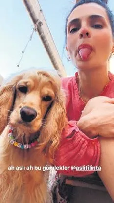 Oyuncu Meriç Aral, önceki gün sevimli köpeğiyle bu pozunu paylaştı. Aral, objektiflere dilini çıkarıp poz verirken 'Lokum' isimli köpeğin şaşkın bakışları yüzleri gülümsetti.