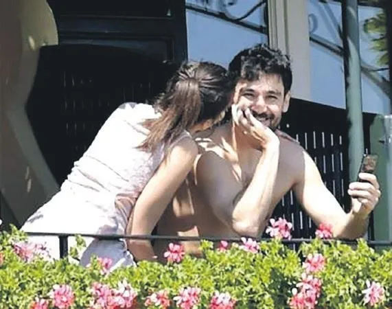 İtalyan güzel, kaldıkları otelin terasında İlkay'ı öpücüklere boğarken objektiflere takıldı.