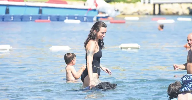 Düzgün fiziği ve siyah mayosuyla tüm bakışları üzerine toplayan Akalay, köpeği Chipsy ile suda oyunlar oynadı. Sevimli köpeğiyle keyifli anlar yaşayan oyuncunun, keyfine diyecek yoktu. Akşam saatlerinde ise mimar Erdem Hamza, sevgilisinin yanına geldi. İkili, objektiflere