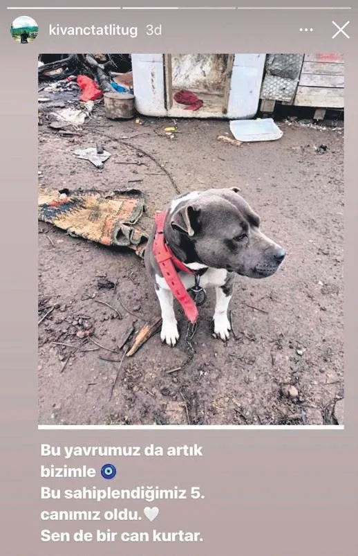 Barınakta dişi bir kangal köpeğiyle yakınlaşan ve köpeğin masum masum baktığı Tatlıtuğ'a "Kıvanç, o kangalı da sahiplenseydin. Sana bakışları unutulmaz" çağrısı yapıldı.
