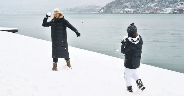 İstanbul'un beyazlara bürünmüş halini kaçırmak istemeyen güzel oyuncu, oğluyla yürüyüş yapıp oyunlar oynadı.