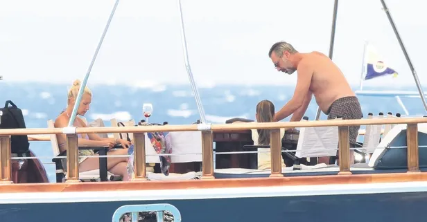 Önceki gün Cennet Koyu'nda günlük kirası 5250 Euro (yaklaşık 95 bin lira) olan Cobra King isimli lüks Gulet teknede görüntülenen sevgililer, gün boyu teknenin arka kısmında keyif yaptı.