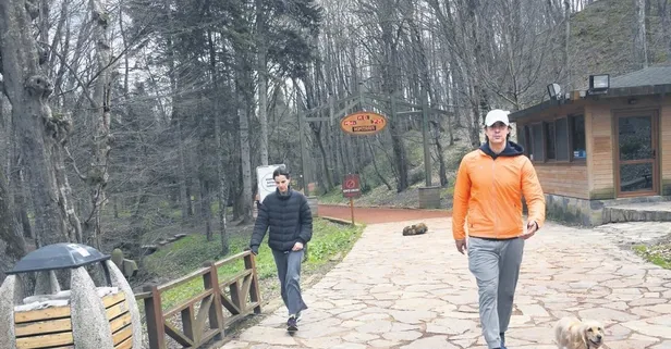 Parkuru baş başa tamamlayan çifte köpekleri de eşlik etti. Görüntülendiklerini fark eden ikili, "Bizim için mi buraya geldiniz?" diye şaşırdıktan sonra tebessüm edip yürüyüşlerini tamamladı.