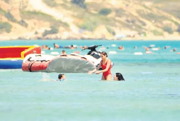 Her sene yaz sezonunu Çeşme'de geçiren uyuncu Öykü Karayel, 2 yaşındaki oğlu Roman'ı yüzmeye alıştırırken objektiflere takıldı. İlk önce bir bayanın kucağında suya giren Bonomo ailesinin minik üyesi, daha sonra annesinin denize gelişiyle gülücükler saçtı. Oğlunu yüzdürmeye çalışan Karayel, Roman'ın minik kulaçlarıyla kendisine doğru hamle yaptığını görünce keyfi yerine geldi. Suyun soğuk olması nedeniyle oğlunun fazla kalmasına müsaade etmeyen güzel oyuncu, Roman'ı mekanın içine götürüp orada kuruladı.
