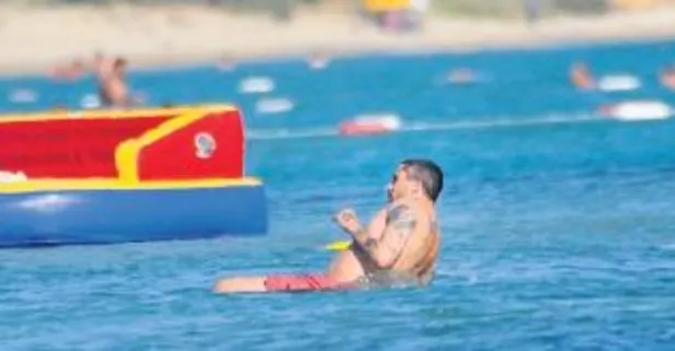 Eşi Öykü Karayel ile Çeşme'de tatil yapan Can Bonomo denizin tadını 2 dakika da çıkardı!