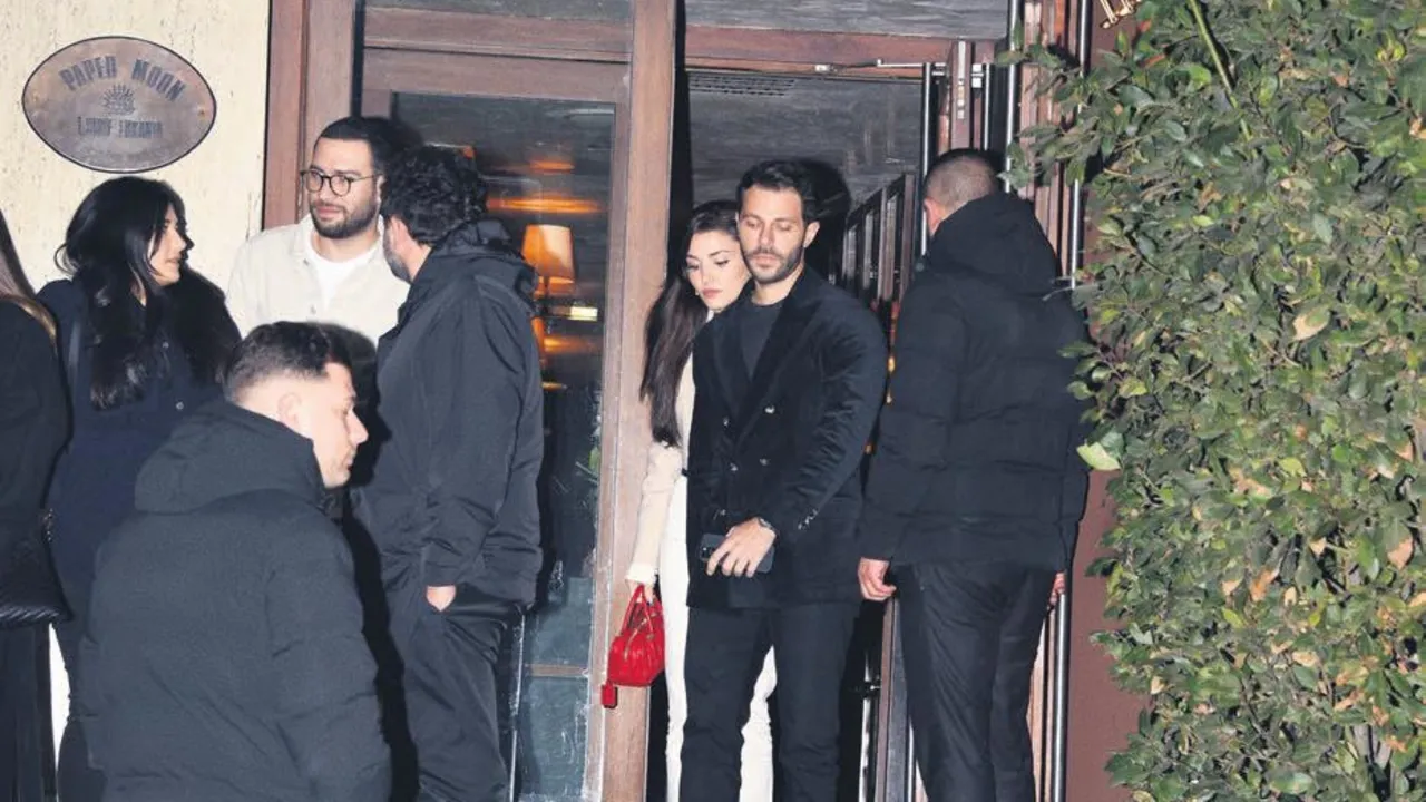 Hande Erçel ve Hakan Sabancı çifti, önceki gece Etiler'de bir mekandan çıkarken görüntülendi.