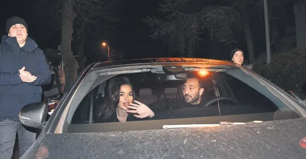 Mekandan beraber çıkan çift, aracın içinde kısaca soruları yanıtladı.
